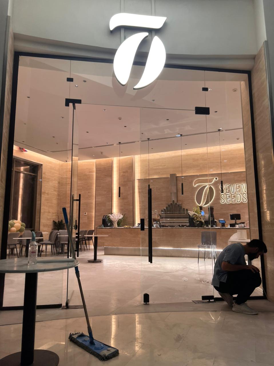 تركيب واجهات محلات تجارية زجاجية بأقوى أنواع الزجاج السيكوريت الآمن المقاوم لدرجة الحرارة.